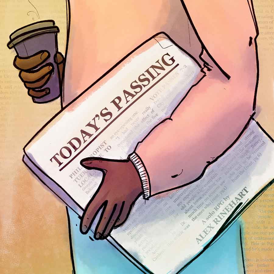 Our first release was the system-neutral RPG Solipstry in 2017. A successful Kickstarter campaign produced both a beautiful hardcover book with art by Flavia Cavalancti, as well as dry-eraseable playing cards that could be used to track conditions across a variety of tabletop roleplaying games.